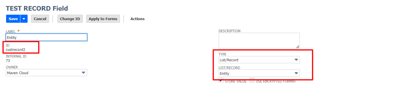 - Field ID - this is the field ID of the custom field referencing the Entity list you created above.