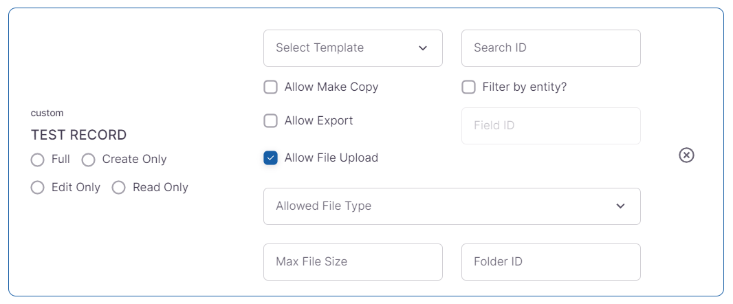 - Lastly, if you would like to allow users to upload files to this record type create a Folder in your file cabinet and take note of the Folder ID, OR use an existing folder by noting the Folder ID of an existing folder.