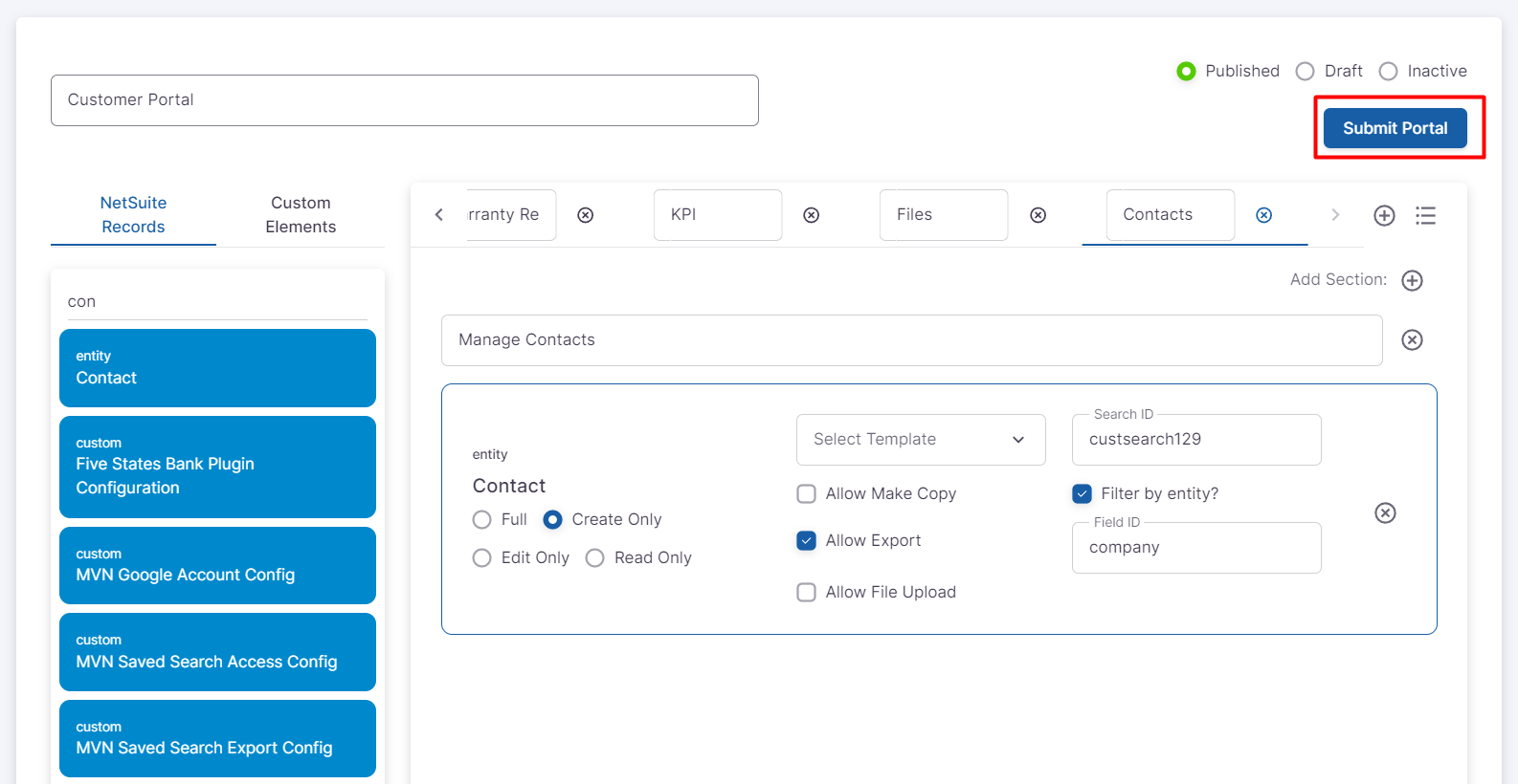 Remember that VERSITAL reads directly from the information that exists in your Netsuite account so you can only display fields and information that has already been created. If there are fields and functions that do not currently exist in your Netsuite environment you will need to build them first, then they will be available to display through a VERSITAL portal. If you need help enhancing your entity records you can review the