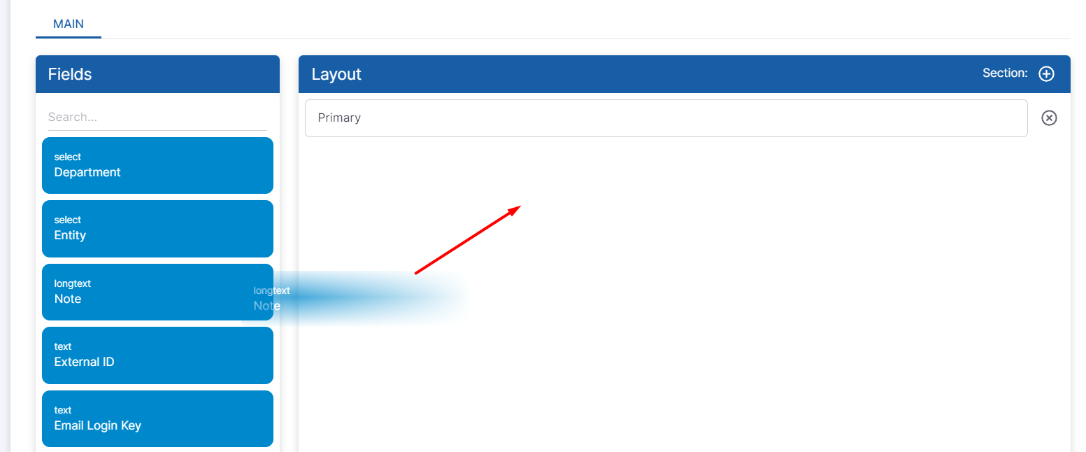 - If you would like to add multiple sections to your form layout use the "+" icon to add new sections.