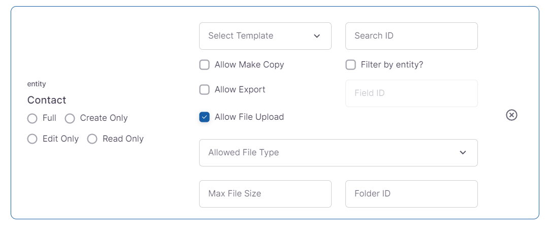 - Allowed File Type - select from the list, the file types to be allowed in the upload process