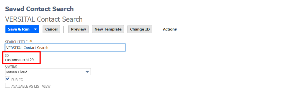 - Once you have built the Saved Search in your NetSuite environment, take note of the Saved Search ID as it will be used later. If you need help creating a Saved Search please review the NetSuite documentation on how to do so.