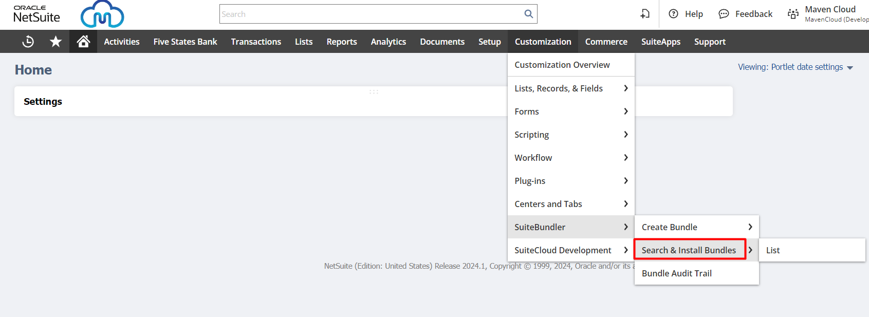 - In NetSuite navigate to Customization > SuiteBundler > Search & Install Bundles