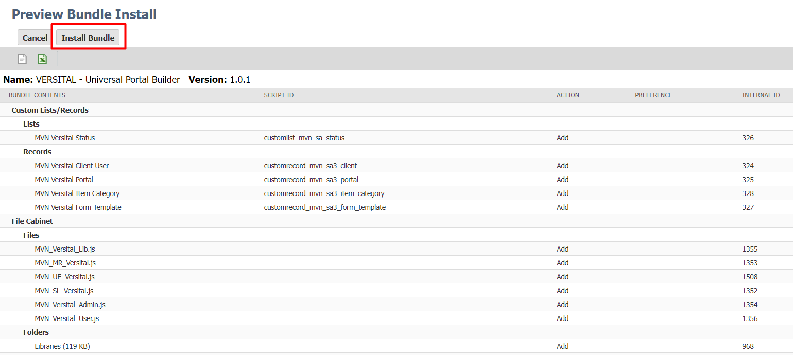 - Click Install Bundle to confirm the objects to be installed
