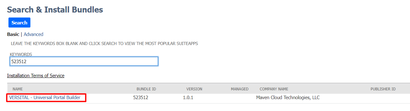 - Search for keywords "VERSITAL" or Bundle ID 523512, then click on the bundle name to begin the installation process.
