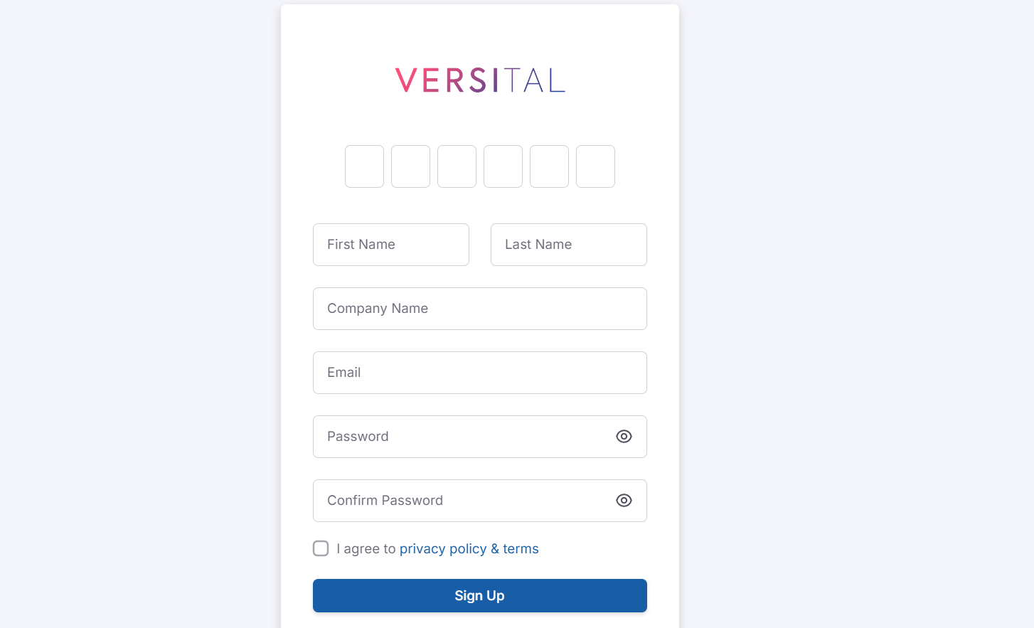 - Once complete click the Sign In link or navigate to the Admin console at www.versital-admin.com
