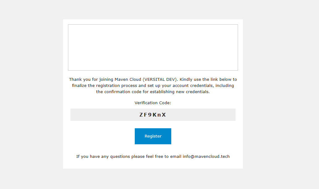 - Your new administrator will receive an email invitation to setup their credentials. Please have them click the Register button to complete their account setup.
