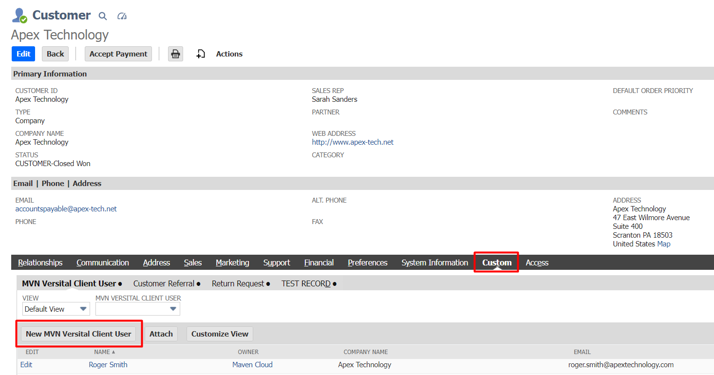 In NetSuite navigate to the Employee record that you want to give access to VERSITAL to. Then on the Access subtab click "New VERSITAL Administrator" Enter the Name and Email address for this Administrator. Mark the Status checkbox and mark "Send ...